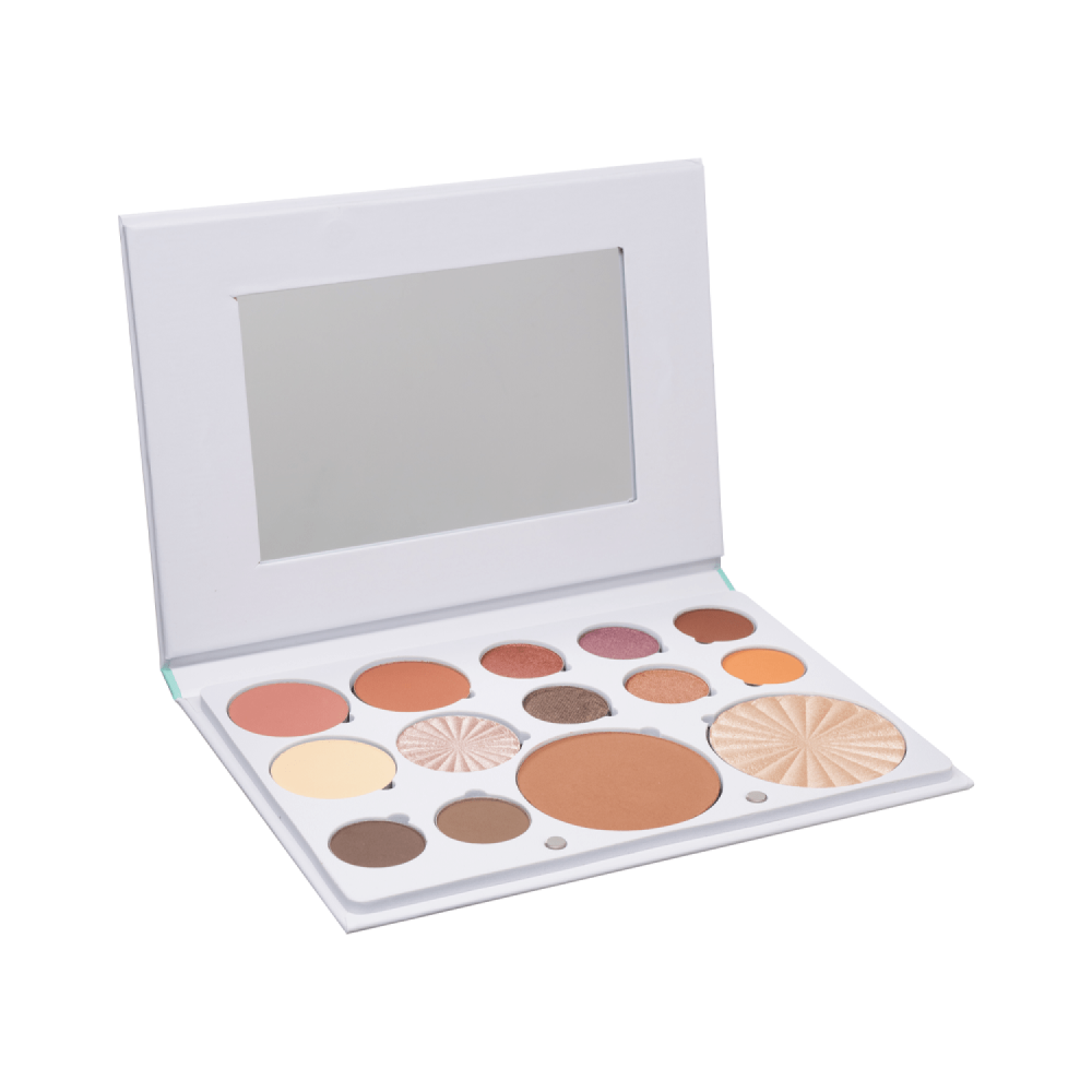 مجموعة تحديد الوجه تحتوي على ظلال عيون، اضاءة، أحمر خدود وبودرة لتسهل تطبيق مكياج جذاب وانيق.